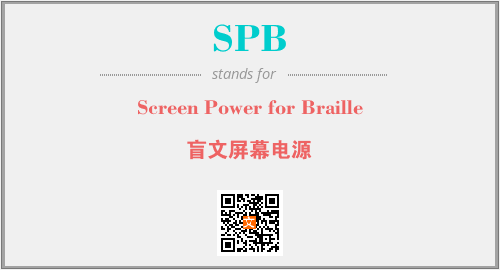 英文缩略词“SPB”经常作为“Screen Power for Braille”的英文缩写来使用,中文表示:“盲文屏幕电源”。本文将详细介绍英文缩写词SPB所代表英文单词,其对应的中文拼音、详细解释以及在英语中的流行度。此外,还有关于缩略词SPB的分类、应用领域及相关应用示例等。