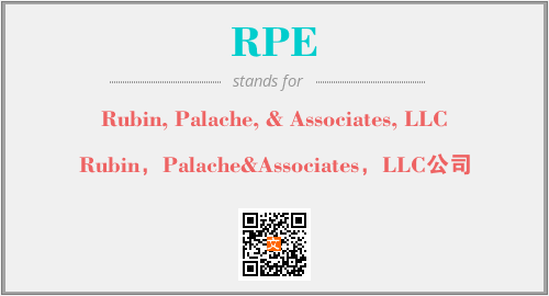 上述内容是“Rubin, Palache, & Associates, LLC”作为“RPE”的缩写,解释为“Rubin,Palache&Associates,LLC公司”时的信息,以及英文缩略词RPE所代表的英文单词,其对应的中文拼音、详细解释以及在英文中的流行度和相关分类、应用领域及应用示例等。