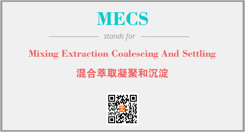 上述内容是“Mixing Extraction Coalescing And Settling”作为“MECS”的缩写,解释为“混合萃取凝聚和沉淀”时的信息,以及英文缩略词MECS所代表的英文单词,其对应的中文拼音、详细解释以及在英文中的流行度和相关分类、应用领域及应用示例等。