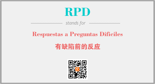 上述内容是“Respuestas a Preguntas Dificiles”作为“RPD”的缩写,解释为“有缺陷前的反应”时的信息,以及英文缩略词RPD所代表的英文单词,其对应的中文拼音、详细解释以及在英文中的流行度和相关分类、应用领域及应用示例等。