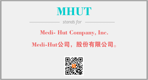 上述内容是“Medi- Hut Company, Inc.”作为“MHUT”的缩写,解释为“Medi-Hut公司,股份有限公司。”时的信息,以及英文缩略词MHUT所代表的英文单词,其对应的中文拼音、详细解释以及在英文中的流行度和相关分类、应用领域及应用示例等。