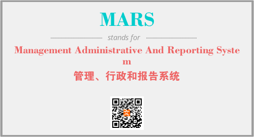 英文缩略词“MARS”经常作为“Management Administrative And Reporting System”的英文缩写来使用,中文表示:“管理、行政和报告系统”。本文将详细介绍英文缩写词MARS所代表英文单词,其对应的中文拼音、详细解释以及在英语中的流行度。此外,还有关于缩略词MARS的分类、应用领域及相关应用示例等。