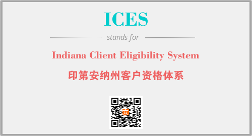 上述内容是“Indiana Client Eligibility System”作为“ICES”的缩写,解释为“印第安纳州客户资格体系”时的信息,以及英文缩略词ICES所代表的英文单词,其对应的中文拼音、详细解释以及在英文中的流行度和相关分类、应用领域及应用示例等。
