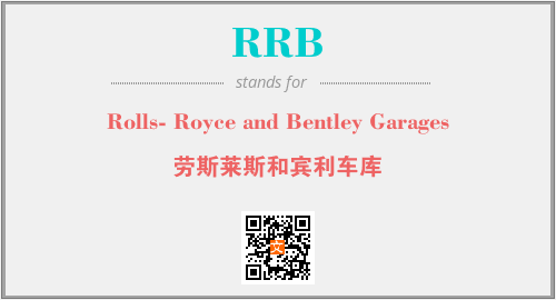 上述内容是“Rolls- Royce and Bentley Garages”作为“RRB”的缩写,解释为“劳斯莱斯和宾利车库”时的信息,以及英文缩略词RRB所代表的英文单词,其对应的中文拼音、详细解释以及在英文中的流行度和相关分类、应用领域及应用示例等。