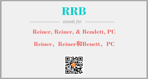 上述内容是“Reiner, Reiner, & Bendett, PC”作为“RRB”的缩写,解释为“Reiner,Reiner和Benett,PC”时的信息,以及英文缩略词RRB所代表的英文单词,其对应的中文拼音、详细解释以及在英文中的流行度和相关分类、应用领域及应用示例等。