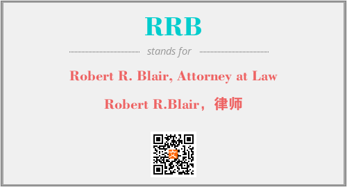 上述内容是“Robert R. Blair, Attorney at Law”作为“RRB”的缩写,解释为“Robert R.Blair,律师”时的信息,以及英文缩略词RRB所代表的英文单词,其对应的中文拼音、详细解释以及在英文中的流行度和相关分类、应用领域及应用示例等。