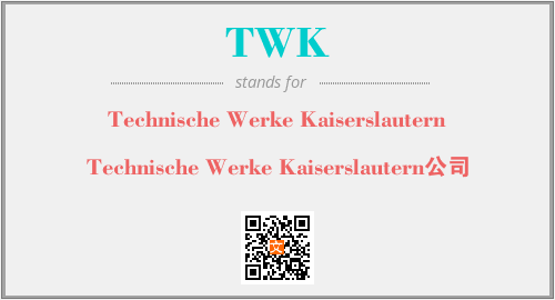 上述内容是“Technische Werke Kaiserslautern”作为“TWK”的缩写,解释为“Technische Werke Kaiserslautern公司”时的信息,以及英文缩略词TWK所代表的英文单词,其对应的中文拼音、详细解释以及在英文中的流行度和相关分类、应用领域及应用示例等。