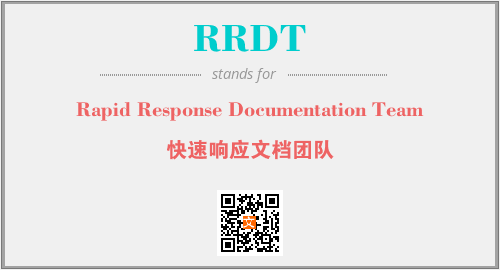 上述内容是“Rapid Response Documentation Team”作为“RRDT”的缩写,解释为“快速响应文档团队”时的信息,以及英文缩略词RRDT所代表的英文单词,其对应的中文拼音、详细解释以及在英文中的流行度和相关分类、应用领域及应用示例等。