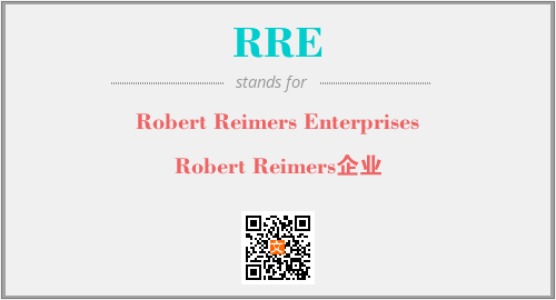 上述内容是“Robert Reimers Enterprises”作为“RRE”的缩写,解释为“Robert Reimers企业”时的信息,以及英文缩略词RRE所代表的英文单词,其对应的中文拼音、详细解释以及在英文中的流行度和相关分类、应用领域及应用示例等。