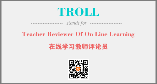 英文缩略词“TROLL”经常作为“Teacher Reviewer Of On Line Learning”的英文缩写来使用,中文表示:“在线学习教师评论员”。本文将详细介绍英文缩写词TROLL所代表英文单词,其对应的中文拼音、详细解释以及在英语中的流行度。此外,还有关于缩略词TROLL的分类、应用领域及相关应用示例等。