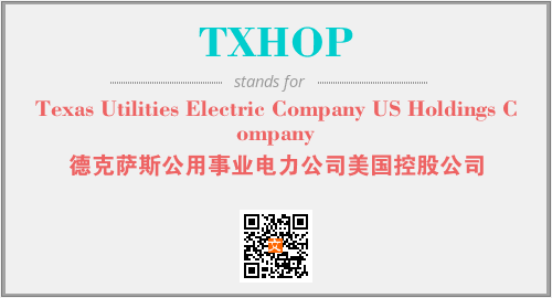 上述内容是“Texas Utilities Electric Company US Holdings Company”作为“TXHOP”的缩写,解释为“德克萨斯公用事业电力公司美国控股公司”时的信息,以及英文缩略词TXHOP所代表的英文单词,其对应的中文拼音、详细解释以及在英文中的流行度和相关分类、应用领域及应用示例等。