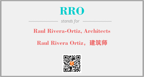 上述内容是“Raul Rivera-Ortiz, Architects”作为“RRO”的缩写,解释为“Raul Rivera Ortiz,建筑师”时的信息,以及英文缩略词RRO所代表的英文单词,其对应的中文拼音、详细解释以及在英文中的流行度和相关分类、应用领域及应用示例等。