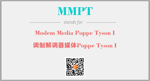 上述内容是“Modem Media Poppe Tyson I”作为“MMPT”的缩写,解释为“调制解调器媒体Poppe Tyson I”时的信息,以及英文缩略词MMPT所代表的英文单词,其对应的中文拼音、详细解释以及在英文中的流行度和相关分类、应用领域及应用示例等。