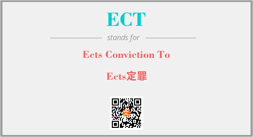英文缩略词“ECT”经常作为“Ects Conviction To”的英文缩写来使用,中文表示:“Ects定罪”。本文将详细介绍英文缩写词ECT所代表英文单词,其对应的中文拼音、详细解释以及在英语中的流行度。此外,还有关于缩略词ECT的分类、应用领域及相关应用示例等。