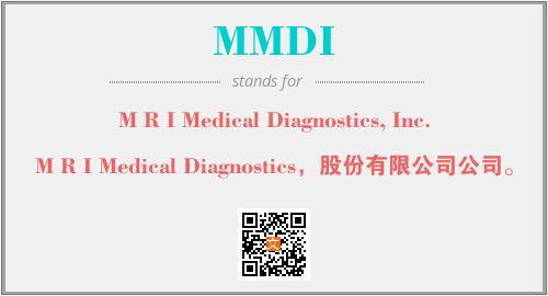 上述内容是“M R I Medical Diagnostics, Inc.”作为“MMDI”的缩写,解释为“M R I Medical Diagnostics,股份有限公司公司。”时的信息,以及英文缩略词MMDI所代表的英文单词,其对应的中文拼音、详细解释以及在英文中的流行度和相关分类、应用领域及应用示例等。