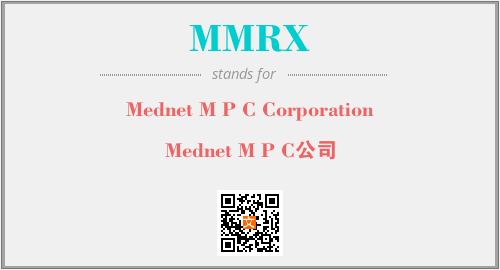 上述内容是“Mednet M P C Corporation”作为“MMRX”的缩写,解释为“Mednet M P C公司”时的信息,以及英文缩略词MMRX所代表的英文单词,其对应的中文拼音、详细解释以及在英文中的流行度和相关分类、应用领域及应用示例等。
