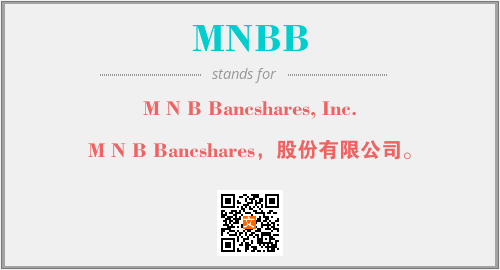 以上为M N B Bancshares, Inc.英文缩略词MNBB的中文解释,以及该英文缩写在英语的流行度、分类和应用领域方面的信息。