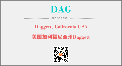 上述内容是“Daggett, California USA”作为“DAG”的缩写,解释为“美国加利福尼亚州Daggett”时的信息,以及英文缩略词DAG所代表的英文单词,其对应的中文拼音、详细解释以及在英文中的流行度和相关分类、应用领域及应用示例等。