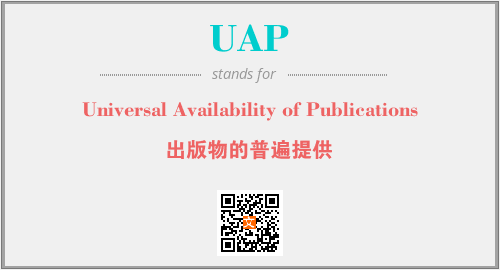 上述内容是“Universal Availability of Publications”作为“UAP”的缩写,解释为“出版物的普遍提供”时的信息,以及英文缩略词UAP所代表的英文单词,其对应的中文拼音、详细解释以及在英文中的流行度和相关分类、应用领域及应用示例等。