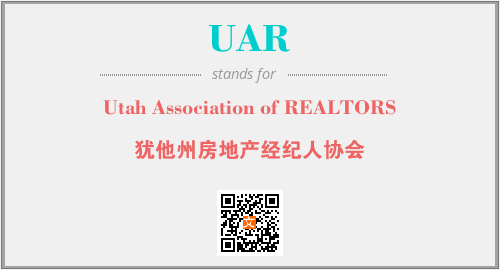 上述内容是“Utah Association of REALTORS”作为“UAR”的缩写,解释为“犹他州房地产经纪人协会”时的信息,以及英文缩略词UAR所代表的英文单词,其对应的中文拼音、详细解释以及在英文中的流行度和相关分类、应用领域及应用示例等。