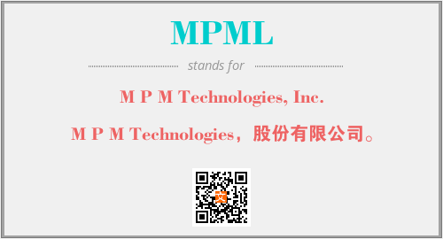 上述内容是“M P M Technologies, Inc.”作为“MPML”的缩写,解释为“M P M Technologies,股份有限公司。”时的信息,以及英文缩略词MPML所代表的英文单词,其对应的中文拼音、详细解释以及在英文中的流行度和相关分类、应用领域及应用示例等。