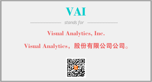 上述内容是“Visual Analytics, Inc.”作为“VAI”的缩写,解释为“Visual Analytics,股份有限公司公司。”时的信息,以及英文缩略词VAI所代表的英文单词,其对应的中文拼音、详细解释以及在英文中的流行度和相关分类、应用领域及应用示例等。