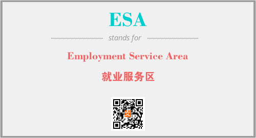 上述内容是“Employment Service Area”作为“ESA”的缩写,解释为“就业服务区”时的信息,以及英文缩略词ESA所代表的英文单词,其对应的中文拼音、详细解释以及在英文中的流行度和相关分类、应用领域及应用示例等。
