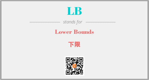 英文缩略词“LB”经常作为“Lower Bounds”的英文缩写来使用,中文表示:“下限”。本文将详细介绍英文缩写词LB所代表英文单词,其对应的中文拼音、详细解释以及在英语中的流行度。此外,还有关于缩略词LB的分类、应用领域及相关应用示例等。
