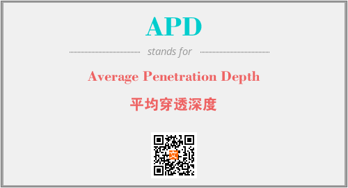 上述内容是“Average Penetration Depth”作为“APD”的缩写,解释为“平均穿透深度”时的信息,以及英文缩略词APD所代表的英文单词,其对应的中文拼音、详细解释以及在英文中的流行度和相关分类、应用领域及应用示例等。