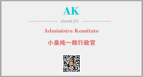 上述内容是“Administra Komitato”作为“AK”的缩写,解释为“小泉纯一郎行政官”时的信息,以及英文缩略词AK所代表的英文单词,其对应的中文拼音、详细解释以及在英文中的流行度和相关分类、应用领域及应用示例等。
