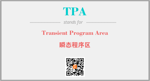 英文缩略词“TPA”经常作为“Transient Program Area”的英文缩写来使用,中文表示:“瞬态程序区”。本文将详细介绍英文缩写词TPA所代表英文单词,其对应的中文拼音、详细解释以及在英语中的流行度。此外,还有关于缩略词TPA的分类、应用领域及相关应用示例等。