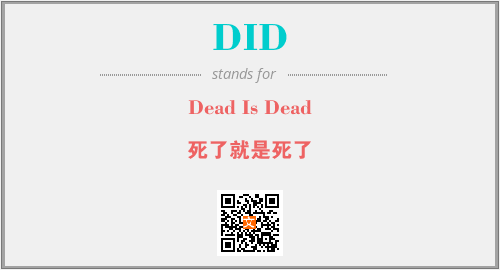 以上为Dead Is Dead英文缩略词DID的中文解释,以及该英文缩写在英语的流行度、分类和应用领域方面的信息。
