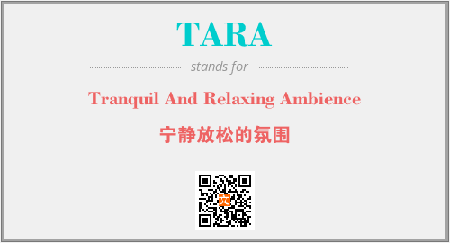 上述内容是“Tranquil And Relaxing Ambience”作为“TARA”的缩写,解释为“宁静放松的氛围”时的信息,以及英文缩略词TARA所代表的英文单词,其对应的中文拼音、详细解释以及在英文中的流行度和相关分类、应用领域及应用示例等。