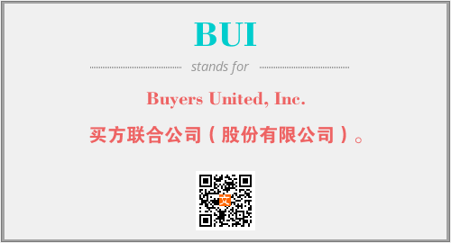 上述内容是“Buyers United, Inc.”作为“BUI”的缩写,解释为“买方联合公司(股份有限公司)。”时的信息,以及英文缩略词BUI所代表的英文单词,其对应的中文拼音、详细解释以及在英文中的流行度和相关分类、应用领域及应用示例等。