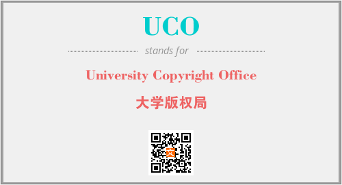 英文缩略词“UCO”经常作为“University Copyright Office”的英文缩写来使用,中文表示:“大学版权局”。本文将详细介绍英文缩写词UCO所代表英文单词,其对应的中文拼音、详细解释以及在英语中的流行度。此外,还有关于缩略词UCO的分类、应用领域及相关应用示例等。