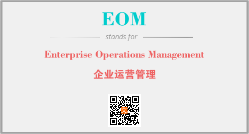 上述内容是“Enterprise Operations Management”作为“EOM”的缩写,解释为“企业运营管理”时的信息,以及英文缩略词EOM所代表的英文单词,其对应的中文拼音、详细解释以及在英文中的流行度和相关分类、应用领域及应用示例等。