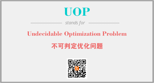 上述内容是“Undecidable Optimization Problem”作为“UOP”的缩写,解释为“不可判定优化问题”时的信息,以及英文缩略词UOP所代表的英文单词,其对应的中文拼音、详细解释以及在英文中的流行度和相关分类、应用领域及应用示例等。