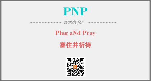 英文缩略词“PNP”经常作为“Plug aNd Pray”的英文缩写来使用,中文表示:“塞住并祈祷”。本文将详细介绍英文缩写词PNP所代表英文单词,其对应的中文拼音、详细解释以及在英语中的流行度。此外,还有关于缩略词PNP的分类、应用领域及相关应用示例等。