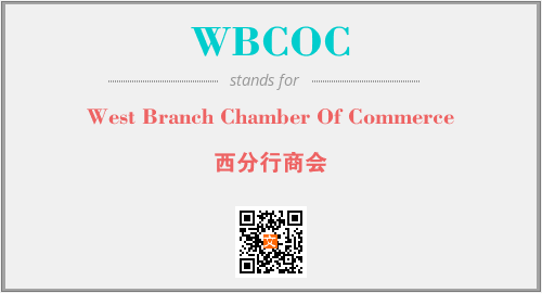 上述内容是“West Branch Chamber Of Commerce”作为“WBCOC”的缩写,解释为“西分行商会”时的信息,以及英文缩略词WBCOC所代表的英文单词,其对应的中文拼音、详细解释以及在英文中的流行度和相关分类、应用领域及应用示例等。
