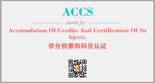 英文缩略词“ACCS”经常作为“Accumulation Of Credits And Certification Of Subjects”的英文缩写来使用,中文表示:“学分积累和科目认证”。本文将详细介绍英文缩写词ACCS所代表英文单词,其对应的中文拼音、详细解释以及在英语中的流行度。此外,还有关于缩略词ACCS的分类、应用领域及相关应用示例等。