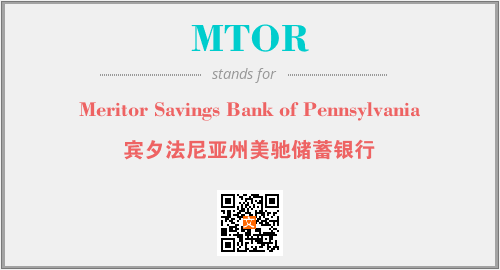 上述内容是“Meritor Savings Bank of Pennsylvania”作为“MTOR”的缩写,解释为“宾夕法尼亚州美驰储蓄银行”时的信息,以及英文缩略词MTOR所代表的英文单词,其对应的中文拼音、详细解释以及在英文中的流行度和相关分类、应用领域及应用示例等。