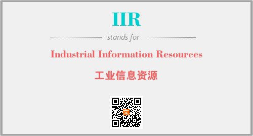上述内容是“Industrial Information Resources”作为“IIR”的缩写,解释为“工业信息资源”时的信息,以及英文缩略词IIR所代表的英文单词,其对应的中文拼音、详细解释以及在英文中的流行度和相关分类、应用领域及应用示例等。