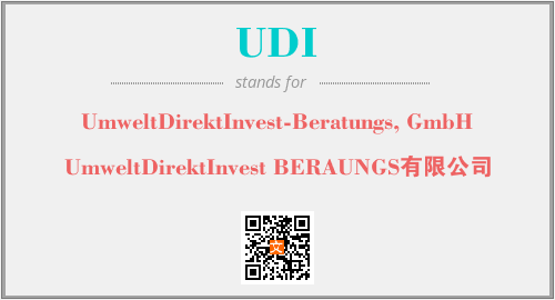 上述内容是“UmweltDirektInvest-Beratungs, GmbH”作为“UDI”的缩写,解释为“UmweltDirektInvest BERAUNGS有限公司”时的信息,以及英文缩略词UDI所代表的英文单词,其对应的中文拼音、详细解释以及在英文中的流行度和相关分类、应用领域及应用示例等。