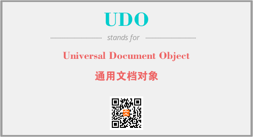英文缩略词“UDO”经常作为“Universal Document Object”的英文缩写来使用,中文表示:“通用文档对象”。本文将详细介绍英文缩写词UDO所代表英文单词,其对应的中文拼音、详细解释以及在英语中的流行度。此外,还有关于缩略词UDO的分类、应用领域及相关应用示例等。