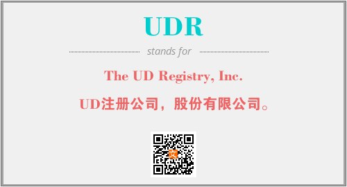 上述内容是“The UD Registry, Inc.”作为“UDR”的缩写,解释为“UD注册公司,股份有限公司。”时的信息,以及英文缩略词UDR所代表的英文单词,其对应的中文拼音、详细解释以及在英文中的流行度和相关分类、应用领域及应用示例等。