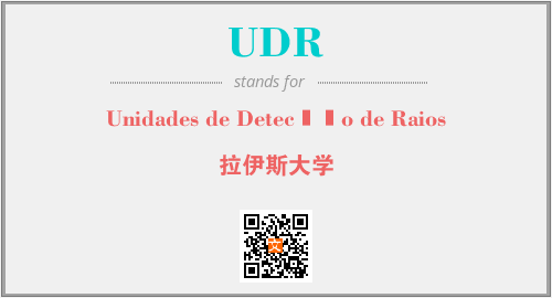 上述内容是“Unidades de Detecção de Raios”作为“UDR”的缩写,解释为“拉伊斯大学”时的信息,以及英文缩略词UDR所代表的英文单词,其对应的中文拼音、详细解释以及在英文中的流行度和相关分类、应用领域及应用示例等。