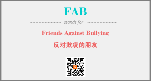 以上为Friends Against Bullying英文缩略词FAB的中文解释,以及该英文缩写在英语的流行度、分类和应用领域方面的信息。