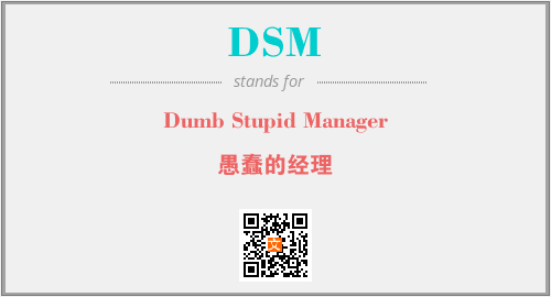 英文缩略词“DSM”经常作为“Dumb Stupid Manager”的英文缩写来使用,中文表示:“愚蠢的经理”。本文将详细介绍英文缩写词DSM所代表英文单词,其对应的中文拼音、详细解释以及在英语中的流行度。此外,还有关于缩略词DSM的分类、应用领域及相关应用示例等。