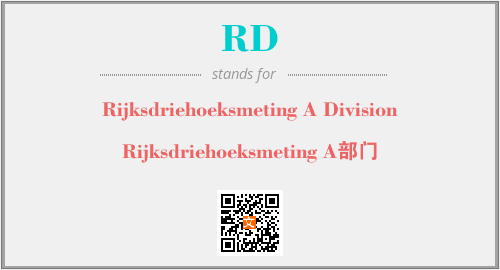 英文缩略词“RD”经常作为“Rijksdriehoeksmeting A Division”的英文缩写来使用,中文表示:“Rijksdriehoeksmeting A部门”。本文将详细介绍英文缩写词RD所代表英文单词,其对应的中文拼音、详细解释以及在英语中的流行度。此外,还有关于缩略词RD的分类、应用领域及相关应用示例等。
