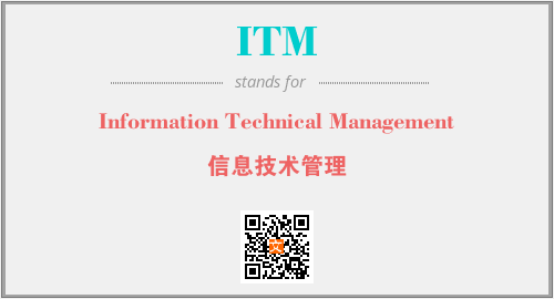 英文缩略词“ITM”经常作为“Information Technical Management”的英文缩写来使用,中文表示:“信息技术管理”。本文将详细介绍英文缩写词ITM所代表英文单词,其对应的中文拼音、详细解释以及在英语中的流行度。此外,还有关于缩略词ITM的分类、应用领域及相关应用示例等。